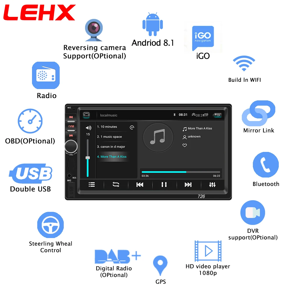 Product Name: Android8.1 автомобильный Радио Мультимедиа Видео плеер 2 Din универсальный авто радио font b gps b font навигация для Volkswagen Nissan hyundai Kia toyota