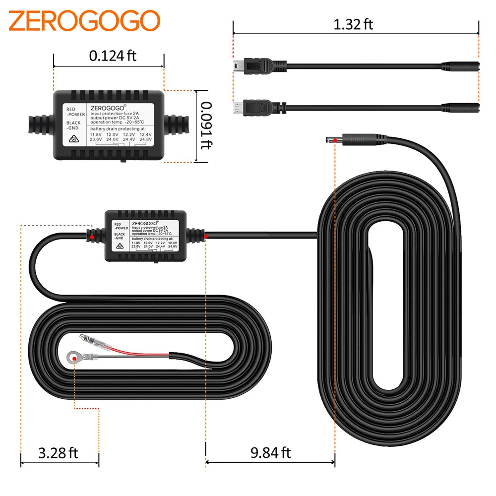 Product Name: ZEROGOGO жесткий провод комплект DC 12 В 24 В до 5 В 2.0A DVR адаптер питания кабель Мини Micro USB Hardwire комплект для видеорегистратора Автомобильный видеор...