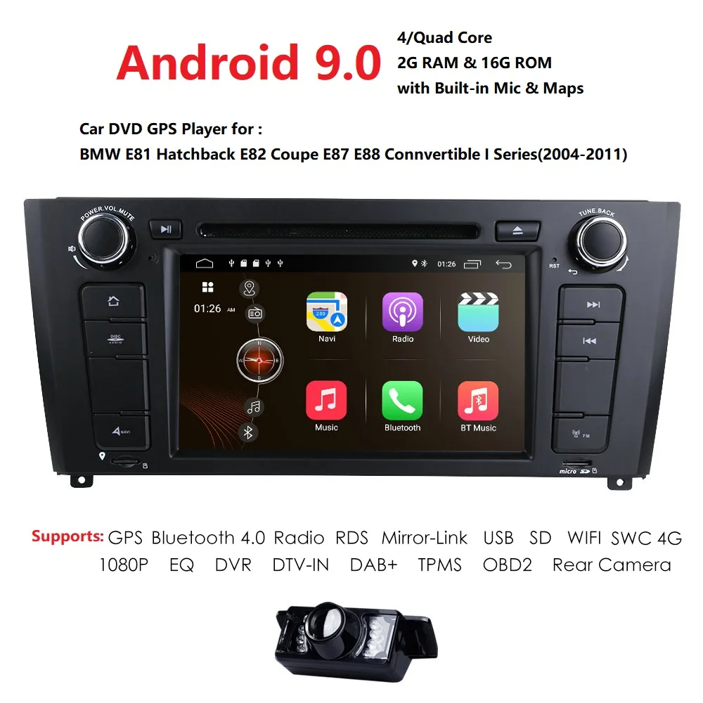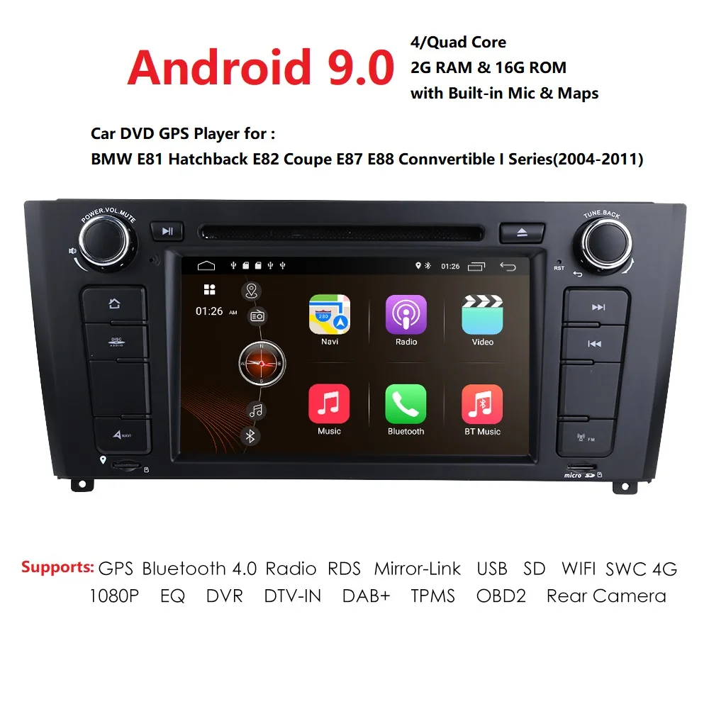 Product Name: 1 Din Android 9,0 font b gps b font автомобильный DVD плеер Пульт дистанционного управления для BMW 1 серия E87 E81 E82 E88 I202004 2005 2006 2007 2008 2009 20102011 экран навигации
