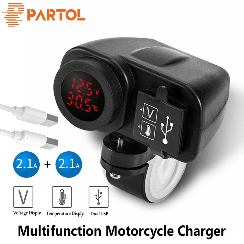 Special Offer Partol Многофункциональный мотоцикл USB зарядное устройство светодиодный цифровой вольтметр термометр 2.1A + 2,1 для зарядки font b gps b font iPhone iPod psp телефонов Discount 20% Today!