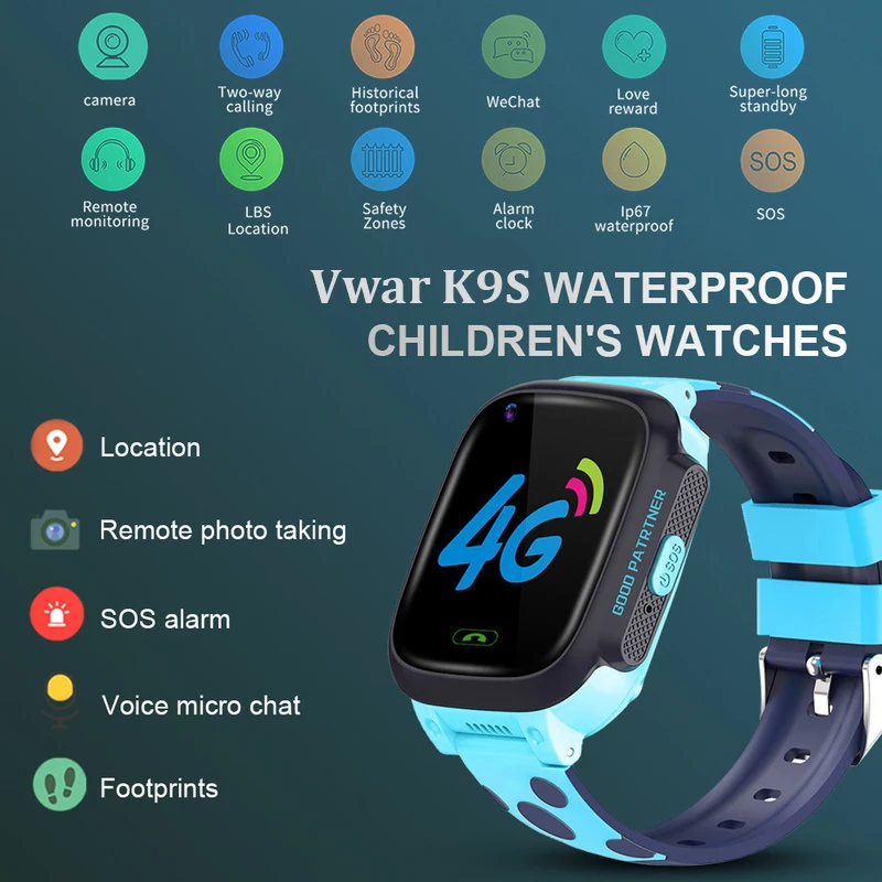 Product Name: Vwar K9S 4G Детские font b gps b font Смарт часы Видеозвонок Wifi SOS детские часы водонепроницаемые font b gps b font камера для отслеживания Детские умные часы VS Q50 Q90