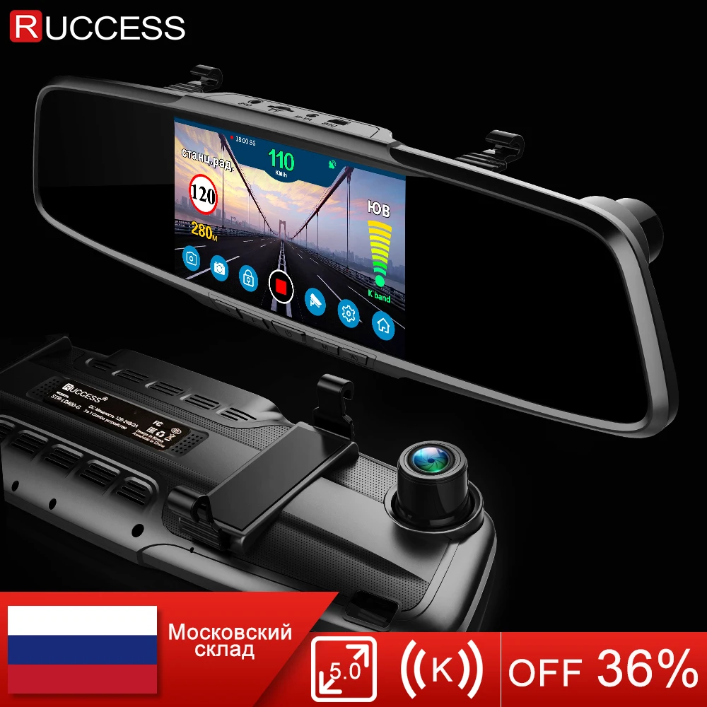 . [Скидка 44%] Купить Ruccess 5,0 "Автомобильные видеорегистраторы 3 в 1 зеркало заднего вида полицейский радар детектор с font b GPS b font FHD 1080p Dashcam двойной объектив Автомобильная ... Цена Дешево.