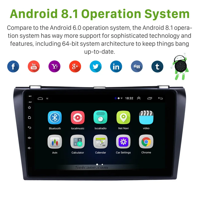 Product Name: Seicane HD 1024*600 Android 8,1 Автомобильный font b GPS b font мультимедийный плеер для 2004 2005 2006 2007 2008 2009 Mazda 3 2Din font b GPS b font Wifi 3G FM SWC