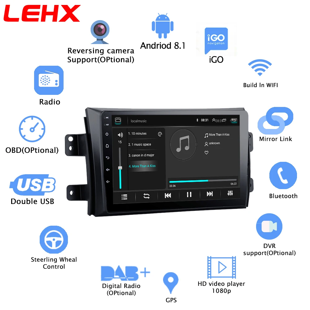 Product Name: LEHX 2.5D IPS экран Автомобильный Радио плеер для Suzuki SX4 2006 2007 2008 2011 2012 2Din Android 8,1 Мультимедиа font b GPS b font навигационный плеер