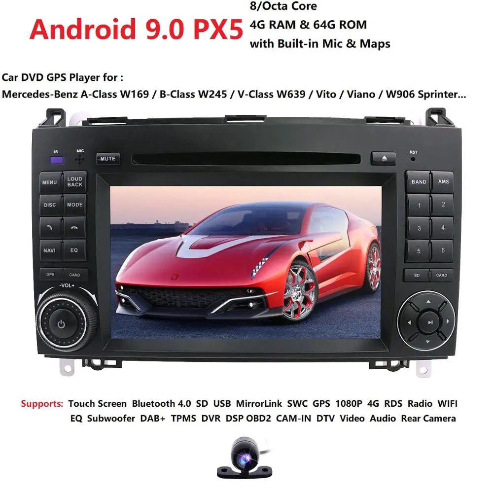 Product Name: Android 9,0 2din автомобильное радио для машины DVD мультимедиа для Mercedes Benz B200 A B Class W169 W245 Viano Vito W639 Sprinter W906 wifi font b gps b font