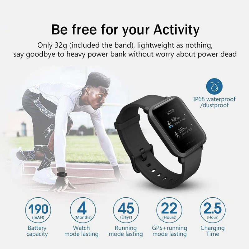 Product Name: Смарт часы Amazfit Bip 45 дней в режиме ожидания Huami Mifit font b gps b font Sportwatch напоминание о звонках мониторинг сна для IOS Android