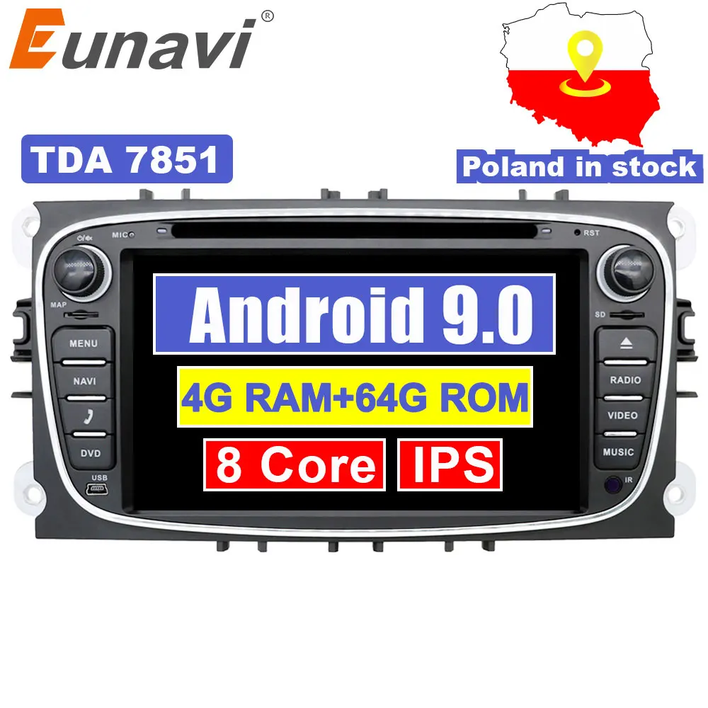 Special Offer Eunavi 2 din Android 9,0 автомобильный DVD мультимедийный плеер для FORD Focus Mondeo S MAX C MAX Galaxy 4G 64G радио 2din font b gps b font Navi Стерео ПК Discount 35% Today!