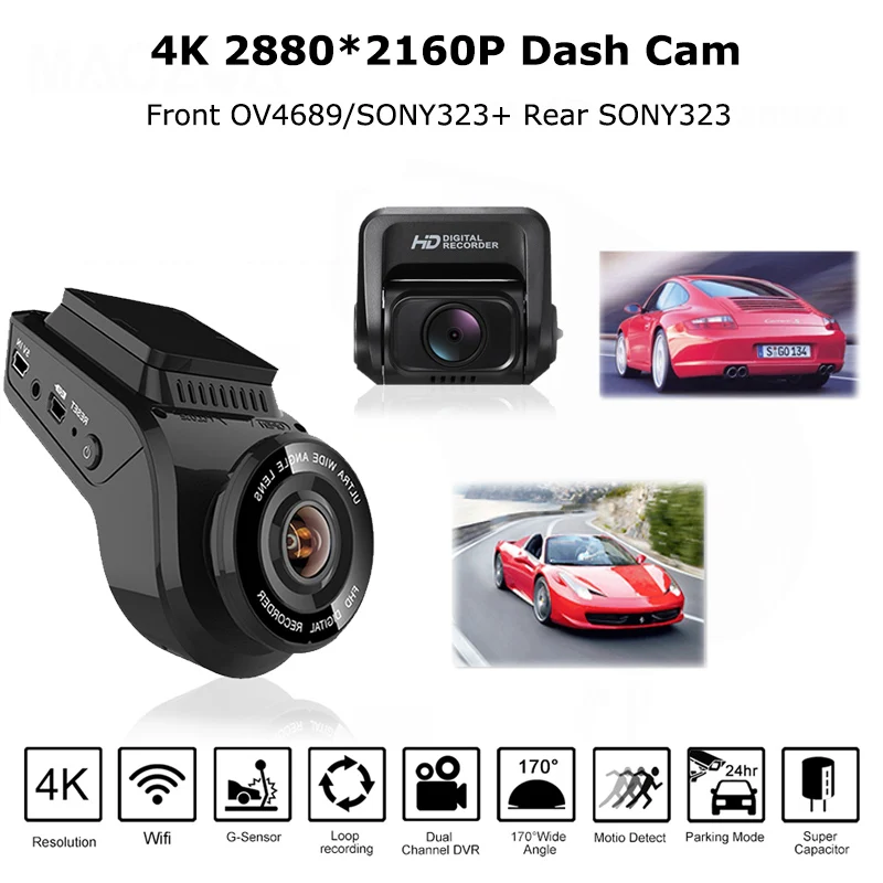 Product Name: Автомобильный видеорегистратор 2160P 4K Ultra HD с 1080P тыловой камерой, WiFi, font b GPS b font , регистратор, ADAS, двойной объектив, видеорегистратор для автомобиля, н...