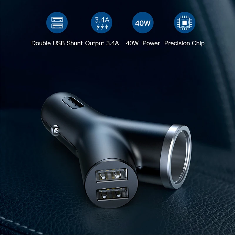 . [Скидка 40%] Купить Автомобильное зарядное устройство Baseus 40 Вт для универсального мобильного телефона, двойной usb разъем для автомобильного прикуривателя для ... Продажа Дешево.