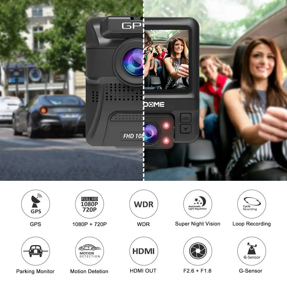 . [Скидка 50%] Купить AZDOME GS65H Оригинальный мини видеорегистратор с двумя объективами, видеорегистратор для автомобиля, фронтальная камера Full HD 1080 P задняя камера ... Цена Дешево.