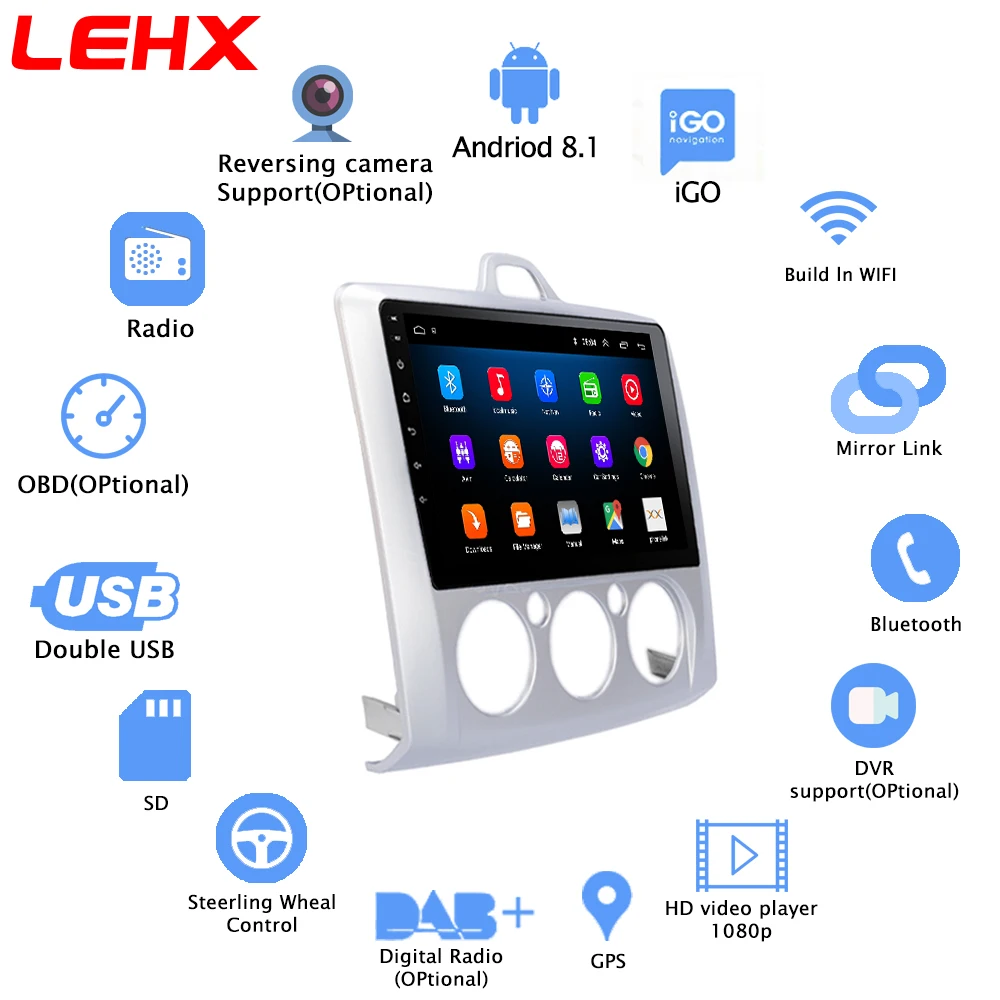 Product Name: LEHX автомобильный Android 8,1 font b gps b font навигатор Автомобильный Радио Мультимедиа Видео плеер для ford focus 2 3 2006 2011 хэтчбек No 2 din dvd