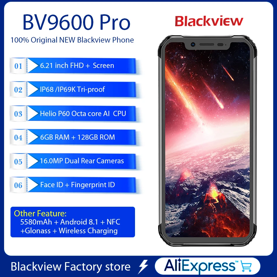 . [Скидка 20%] Купить BLACKVIEW BV9600 Pro IP68 6 ГБ + 128 Гб Смартфон 16 МП Face ID 6,21 дюймов FHD + Беспроводная зарядка NFC 4G Android 8,1 font b gps b font мобильный телефон Продажа Дешево.