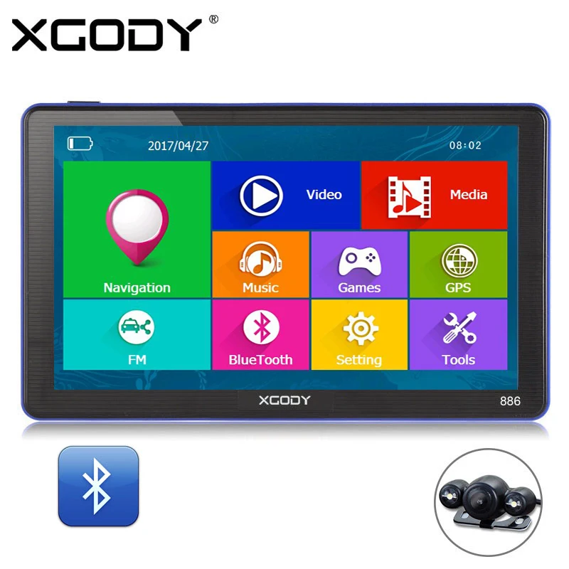 . [Скидка 30%] Купить XGODY 886, 7 дюймов, 256 м + 8 г, Bluetooth, AV IN, для автомобиля, грузовика, font b gps b font навигация, ёмкостный экран, FM навигатор, камера заднего вида, Карта Европы 2018 Цена Дешево.