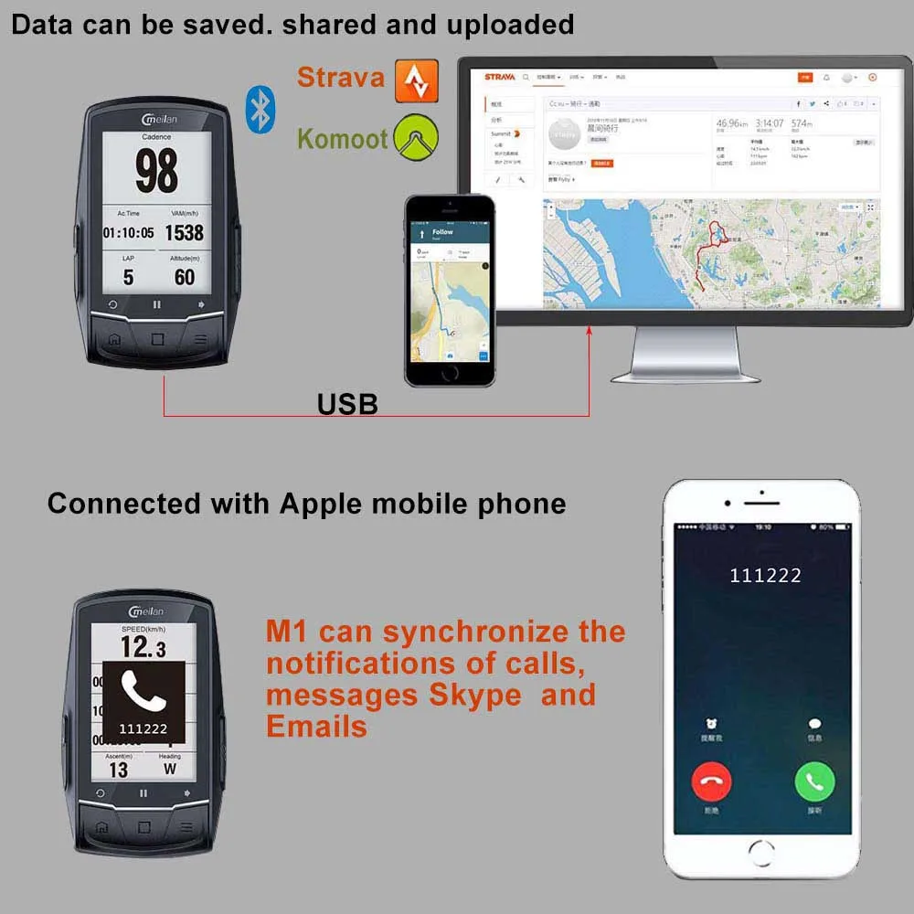 Product Name: Meilan M1 велосипед font b gps b font велосипедный компьютер font b gps b font навигация BLE4.0 Спидометр подключение с Каденс HR монитор измеритель мощности (не включает)