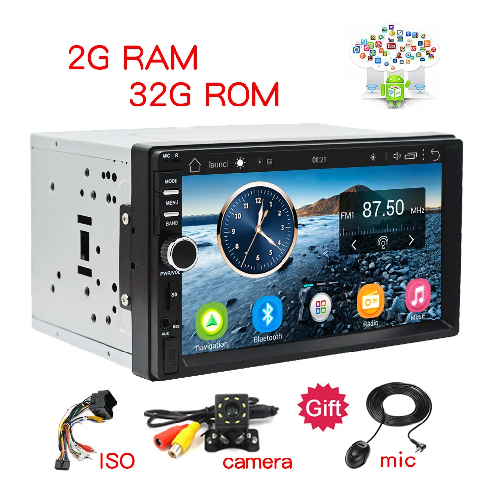 . [Скидка 40%] Купить 2Din автомобильный стерео font b GPS b font 2G + 32G Автомобильный мультимедийный плеер Android Bluetooth Музыка Аудио Видео Wi Fi 7 дюймов сенсорный экран SD USB ISO камера ми... Продажа Дешево.