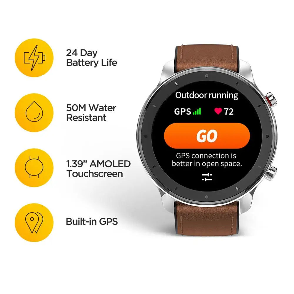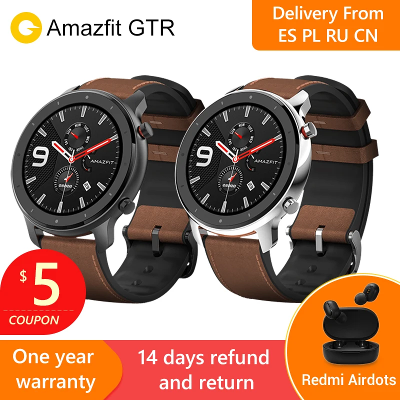 . [Скидка 25%] Купить 2019 Смарт часы Amazfit GTR 47 мм с font b gps b font 5ATM Водонепроницаемость 24 дня Срок службы батареи 12 спортивный режим Bluetooth AMOLED экран Цена Дешево.