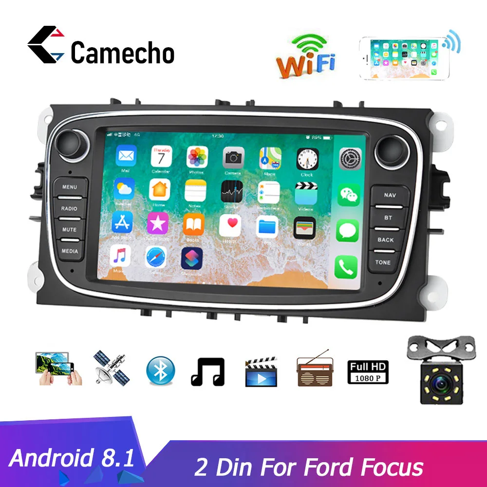 . [Скидка 30%] Купить Camecho Android 8,1 2 Din Автомобильный Радио Мультимедийный видео плеер универсальный font b gps b font авто для Ford Focus Mondeo C MAX S MAX Galaxy II Kuga Продажа Дешево.