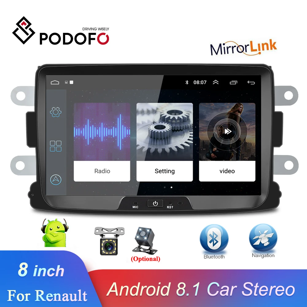 Product Name: Podofo Android 8,1 автомобильный радиоприемник 8 HD сенсорный экран Автоматическое радио font b GPS b font Зеркало Ссылка стерео для Renault Sandero Duster Logan Dokker