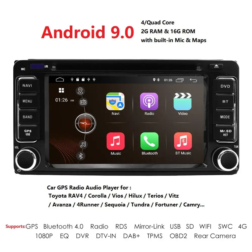 Product Name: 4G DVR SWC карта 2DIN четырехъядерный Android9.0 автомобильный dvd плеер для TOYOTA Previa Старый Corolla Camry Rav4 Prado Terios Vios Hilux font b gps b font Navi