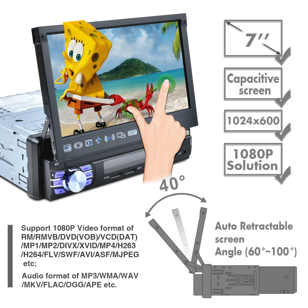 Product Name: Podofo 1 din Android автомобильное радио font b gps b font навигация автоматический выдвижной экран wifi Bluetooth стерео AM FM RDS радио Зеркало Ссылка