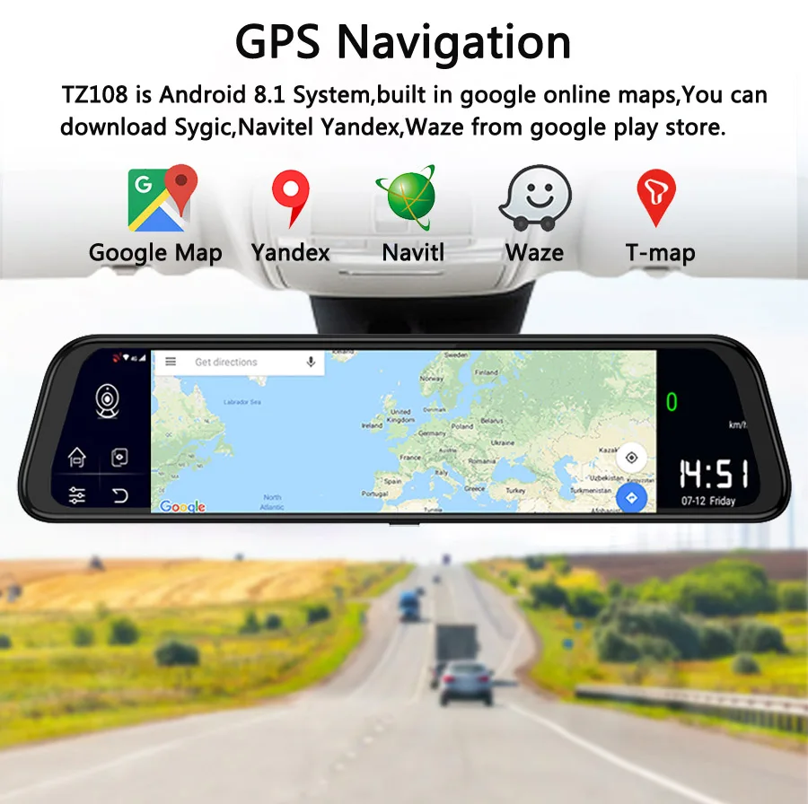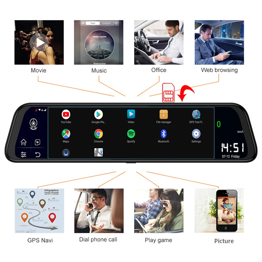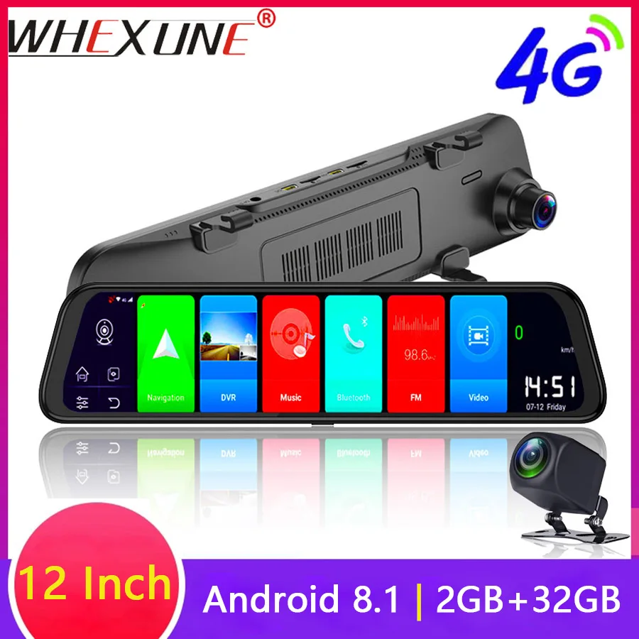 Product Name: WHEXUNE 12 дюймов Android 8,1 Автомобильные видеорегистраторы Камера font b gps b font Bluetooth навигация FHD 1080P Зеркало заднего вида Регистраторы 4G, Wi Fi, ADAS Dash cam 2 ГБ + 32 Г...