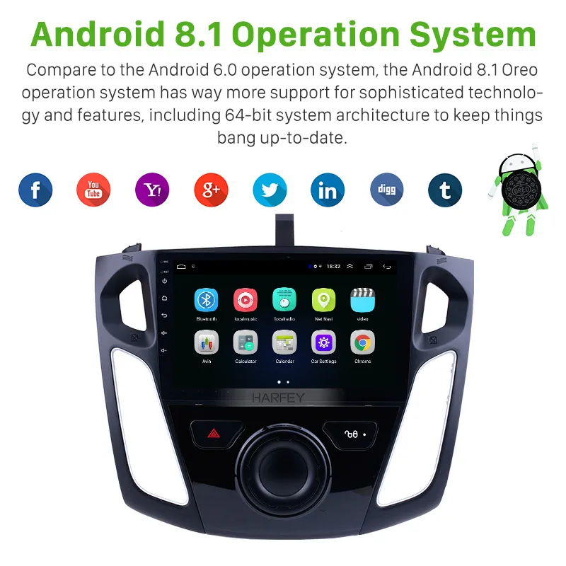 Product Name: Harfey 9 "Android 8,1 font b gps b font навигация радио для 2011 2012 2015 Ford Focus с Bluetooth wifi 1080P USB зеркальная связь OBD2 DVR SWC