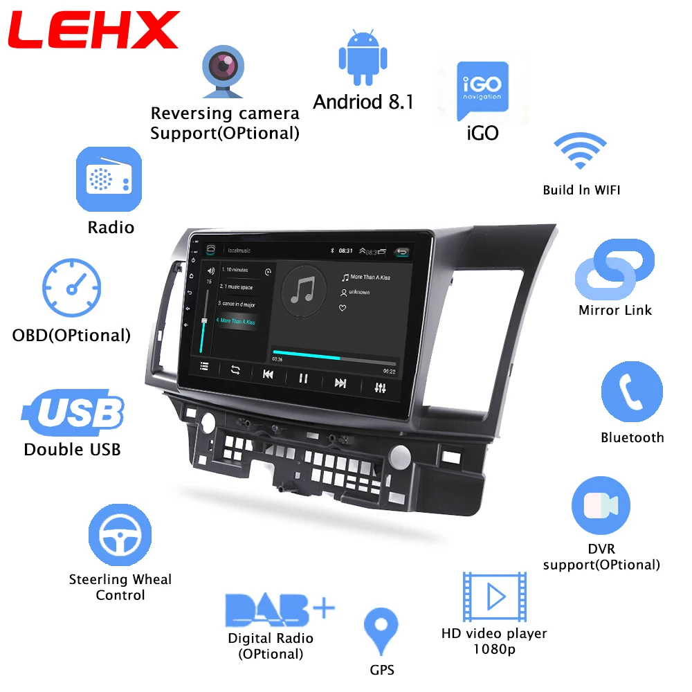 Product Name: Автомобильный Android 8,1 автомобильный dvd мультимедиа для MITSUBISHI LANCER 10,1 дюймов 2 DIN font b Gps b font навигация Радио Видео Аудио плеер