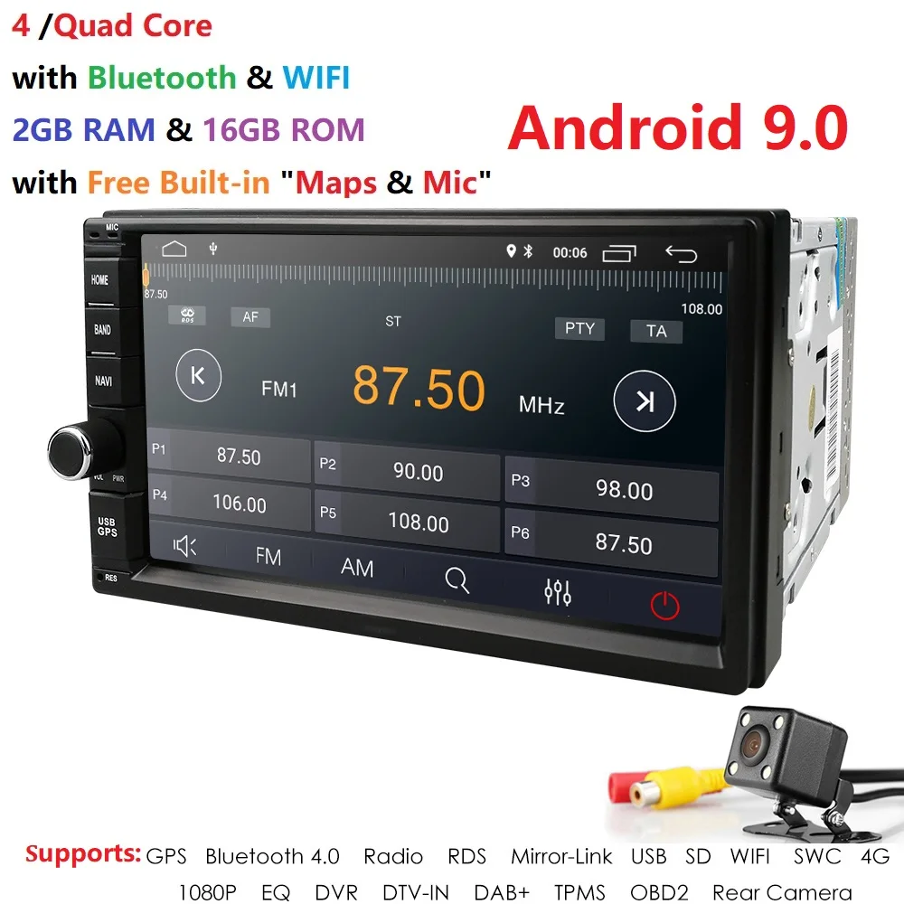 Product Name: Ossuret 7 "Универсальный четырехъядерный 2Din автомобильный Android 9,0 Радио мультимедийный плеер 4G wifi 2GRAM 16GROM font b gps b font навигация MirrorLink Cam BT