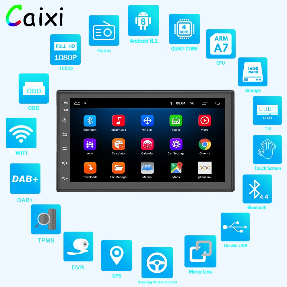 Product Name: Автомобильный Android 8,1 2 Din Автомобильный Радио универсальный автомобильный стерео Мультимедийный видео плеер font b GPS b font карта для toyota Nissan Volkswagen Hyundai ...