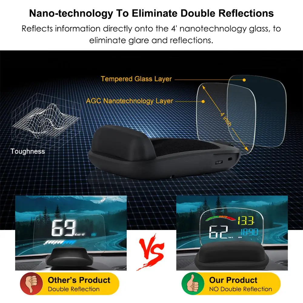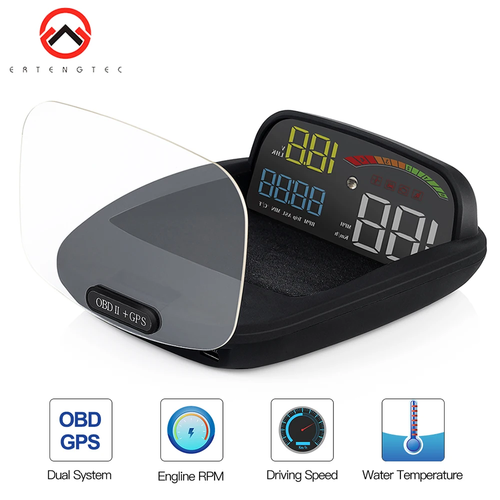 Product Name: Автомобильный Hud Дисплей 2 в 1 font b gps b font OBD2 скоростной проектор Цифровой font b gps b font скоростной метр автомобильный HUD Дисплей бортовой компьютер охранная сиг...