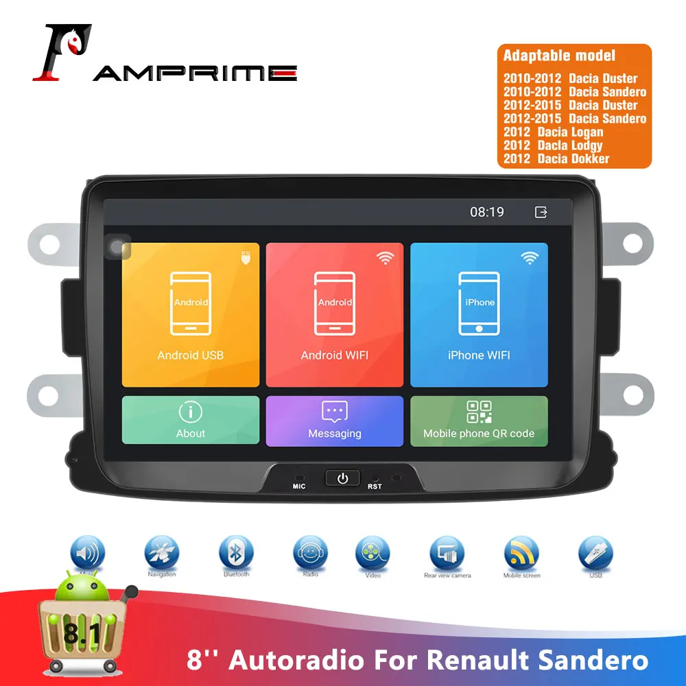 Product Name: AMPrime 2 Din Android 8,1 Автомагнитола 8 сенсорный экран font b gps b font MP5 зеркальная ссылка для Renault Sandero Logan мультимедийный плеер