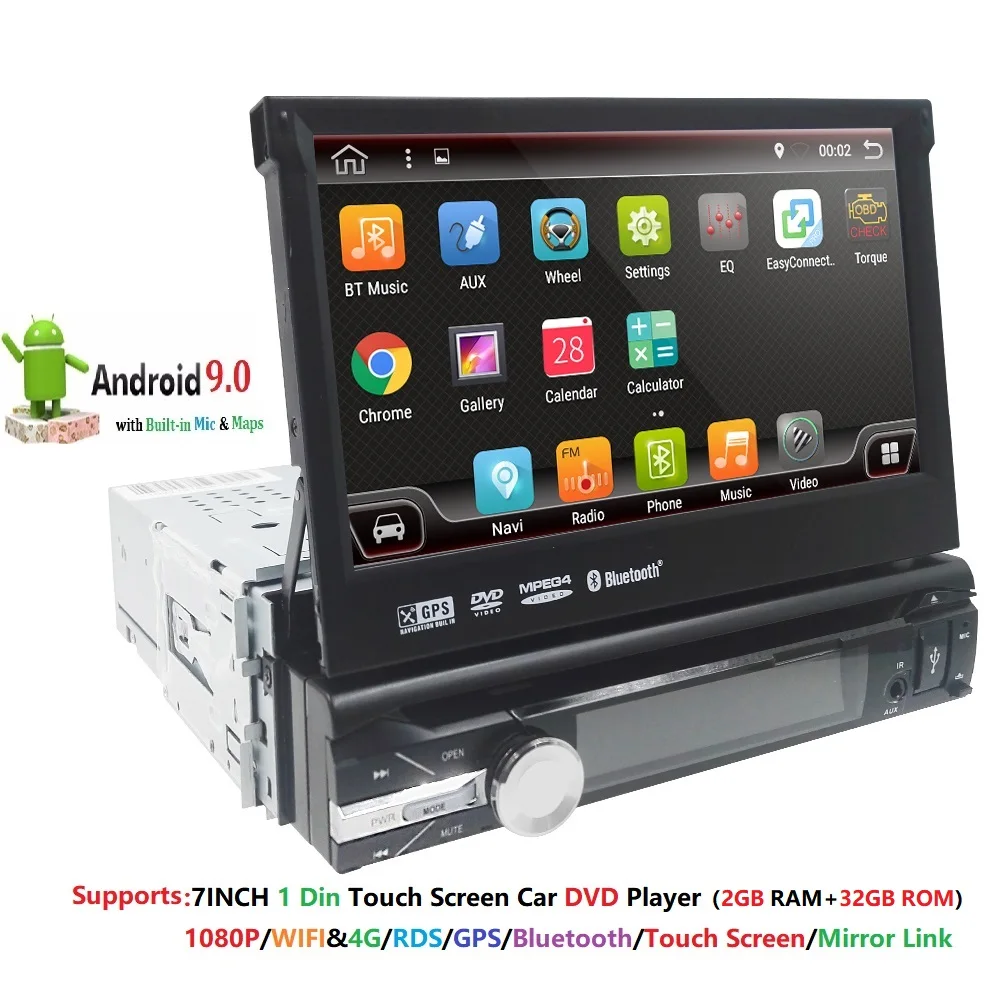 Product Name: Один 1 Din 7 четырехъядерный Универсальный Android 9,0 2GB ram автомобильный Радио Стерео font b gps b font навигация WiFi 1024*600 сенсорный экран 1din автомобильный ПК