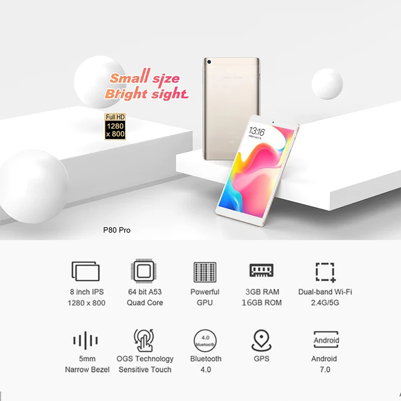 Product Name: Teclast P80 Pro планшетный ПК 8,0 дюймов Full HD Android 7,0 3 Гб ram 16 Гб eMMC rom MTK8163 четырехъядерный двухъядерный процессор WiFi HDMI font b gps b font 5000 мАч