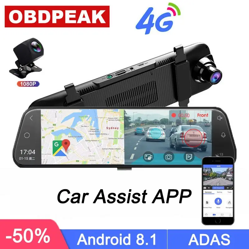 . [Скидка 35%] Купить Android 8,1 Автомобильный видеорегистратор Камера 4G ADAS 10 дюймов поток медиа зеркало заднего вида 1080P WiFi font b gps b font видеорегистратор регистратор видео dvr ... Продажа Дешево.