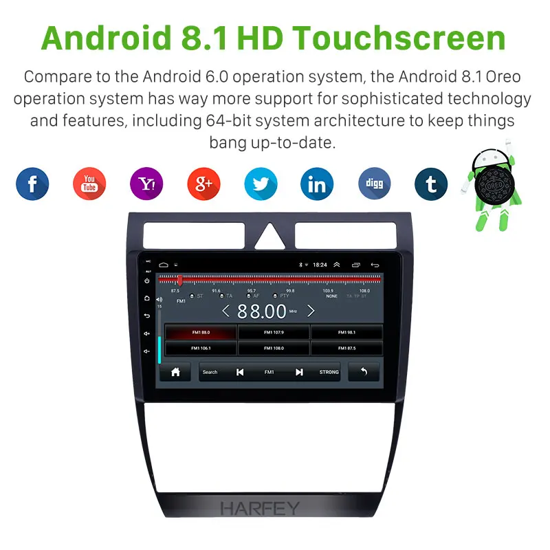 Product Name: Harfey OEM 9 дюймов Android 8.1GPS навигационная Автомобильная магнитола для Audi A6 S6 RS6 1997 2004 wifi HD сенсорный экран AUX USB поддержка Carplay