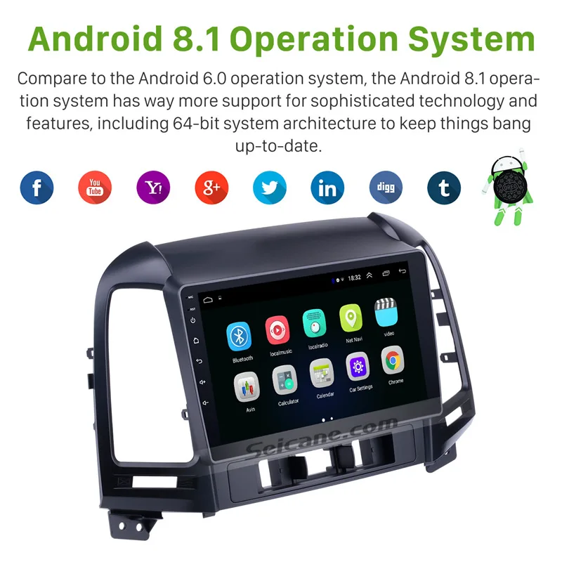 Product Name: Seicane Android 8,1 9 "2din автомобильный Радио мультимедийный плеер font b GPS b font головное устройство для HYUNDAI SANTA FE 2005 2006 2007 2008 2009 2010 2012