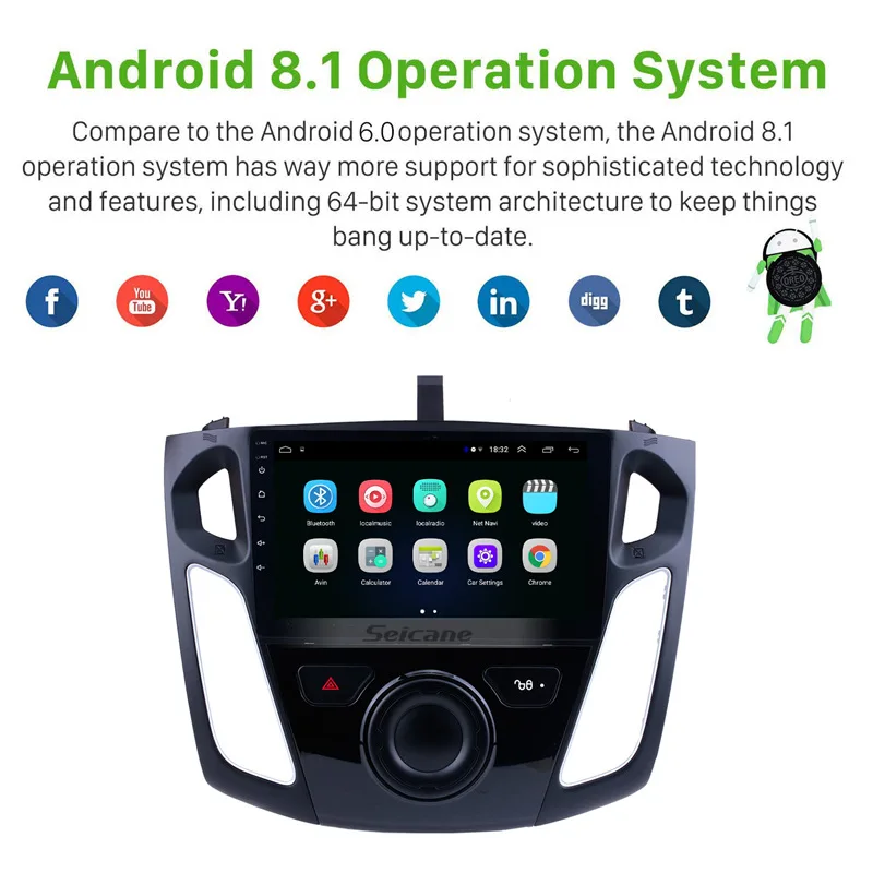 Product Name: Seicane Android 8,1 2Din 9 "стерео для 2011 2012 2013 2014 2015 Ford Focus головное устройство font b gps b font плеер SWC камера заднего вида TPMS DVR