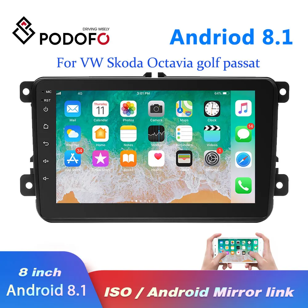 Product Name: Podofo 2 din автомагнитола 8 "Android 8,1 Авторадио мультимедийный плеер font b GPS b font WIFI MP5 IOS Android Mirrorlink для Volkswagen автомобильный стерео