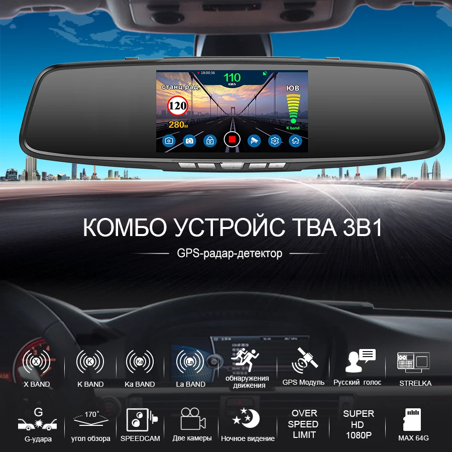 . [Скидка 37%] Купить Kommander зеркало радар детектор Анти радар автомобильный детектор с font b gps b font 3 в 1 DVR Full HD 1080P рекордер камера заднего вида для России Цена Дешево.