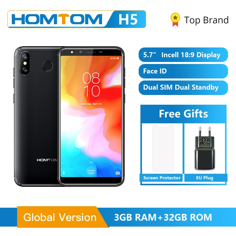Special Offer Оригинал, глобальная версия, HOMTOM H5, 3 Гб ОЗУ, 32 Гб ПЗУ, четырехъядерный мобильный телефон, 5,7 дюймов, font b GPS b font , отпечаток пальца, распознавание лица, 4G,... Discount 13% Today!