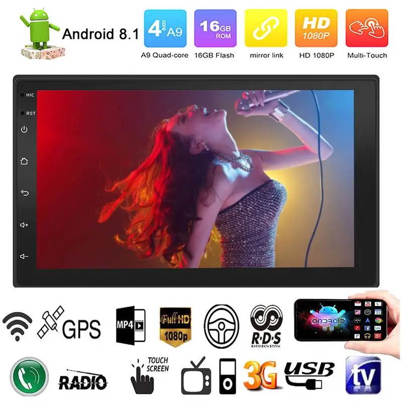 Product Name: Android 8,1 7 дюймов 2Din автомобильный мультимедийный плеер с радио MP5 font b gps b font камера заднего вида Bluetooth звонок телефон Музыка сенсорный экран кнопка