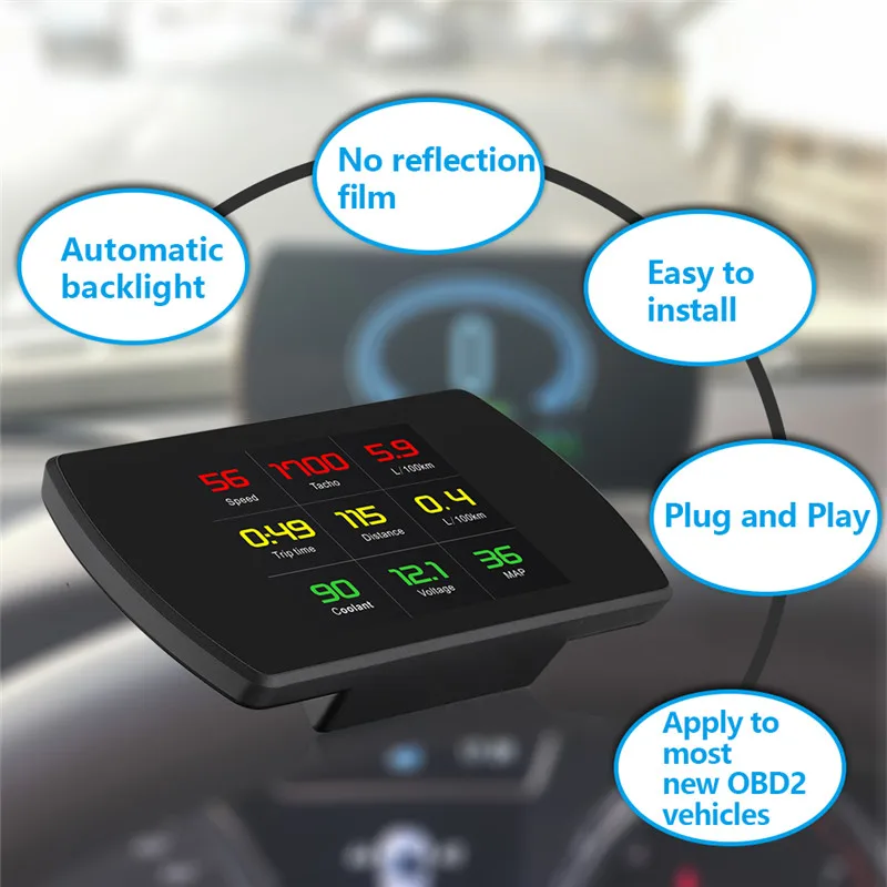 Product Name: OBD2 манометр автомобильный HUD Дисплей Умный Цифровой измеритель HD цифровой дисплей font b gps b font Спидометр расход топлива температура об мин