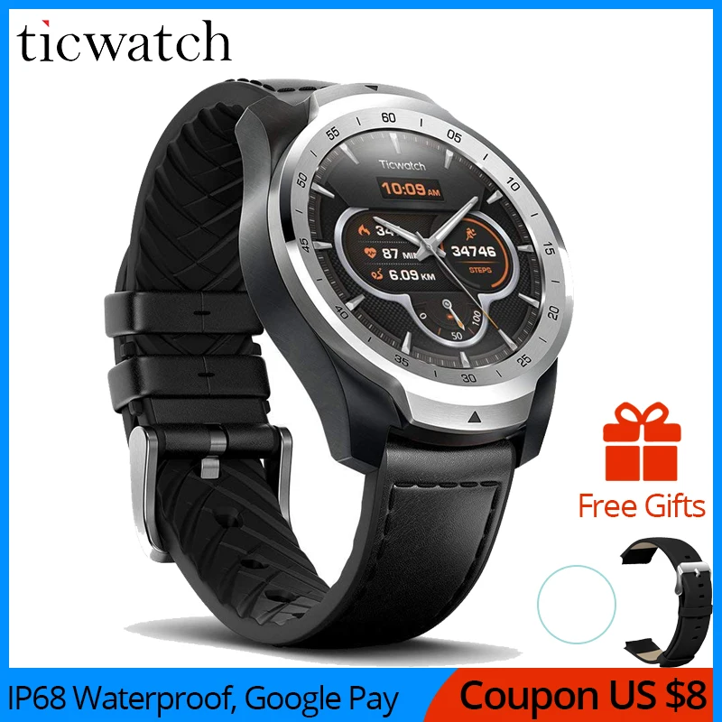 Product Name: Оригинальные спортивные Смарт часы Ticwatch Pro, Bluetooth, Wi Fi, NFC платежи Google Assistant, Android Wear, умные часы, font b gps b font , IP68, водонепроницаемые