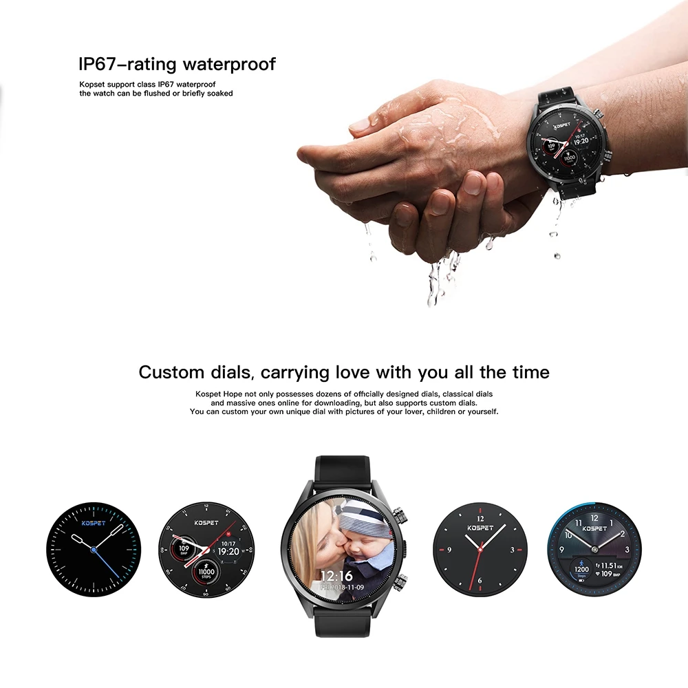 Special Offer Kospet Hope 3g 32G 4G LTE Смарт часы телефон 1,39 дюймов Большой экран AMOLED IP67 wifi font b gps b font ГЛОНАСС 8.0MP Bluetooth Смарт часы Discount 25% Today!