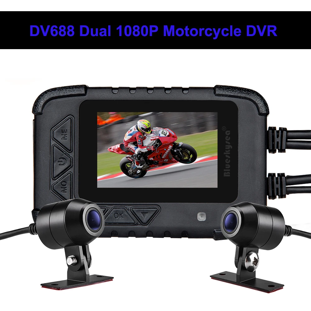 Product Name: Blueskysea DV688 мотоциклетная камера, водонепроницаемая, 2,4 дюйма, 130 °, Dash Cam HD 1080 P, Moto font b gps b font , двойная DVR камера, Moto Mini DVRs, Dashcam