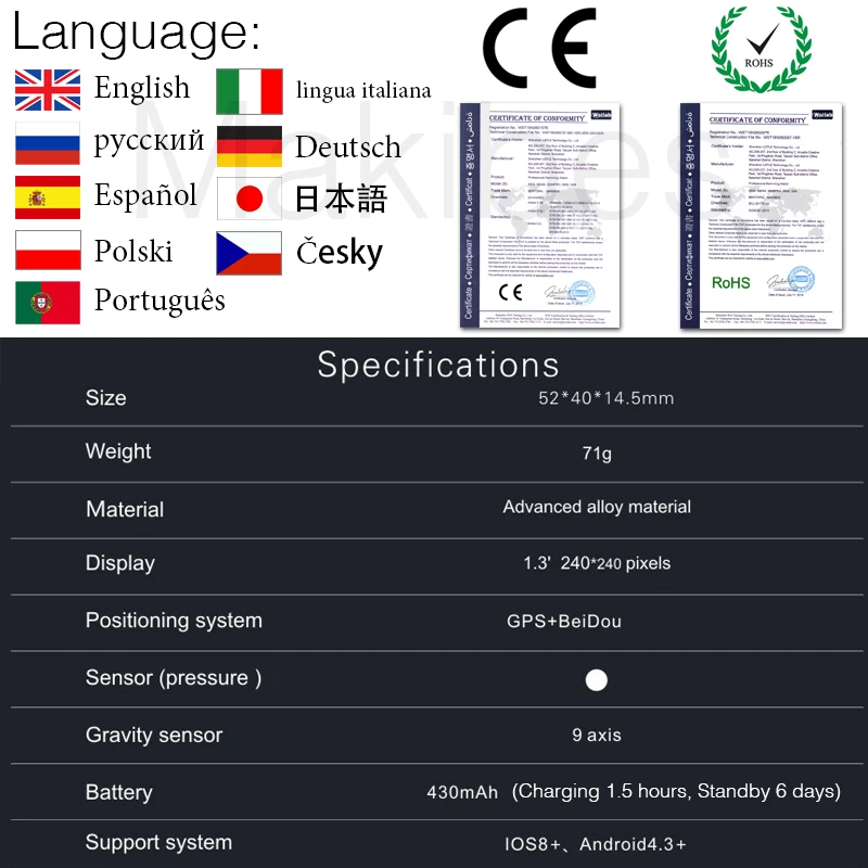 Product Name: Международная версия В наличии Makibes G08 font b gps b font Bluetooth smart watch IP68 Водонепроницаемый сердечного ритма smart watch es Мужская Мульти Спорт