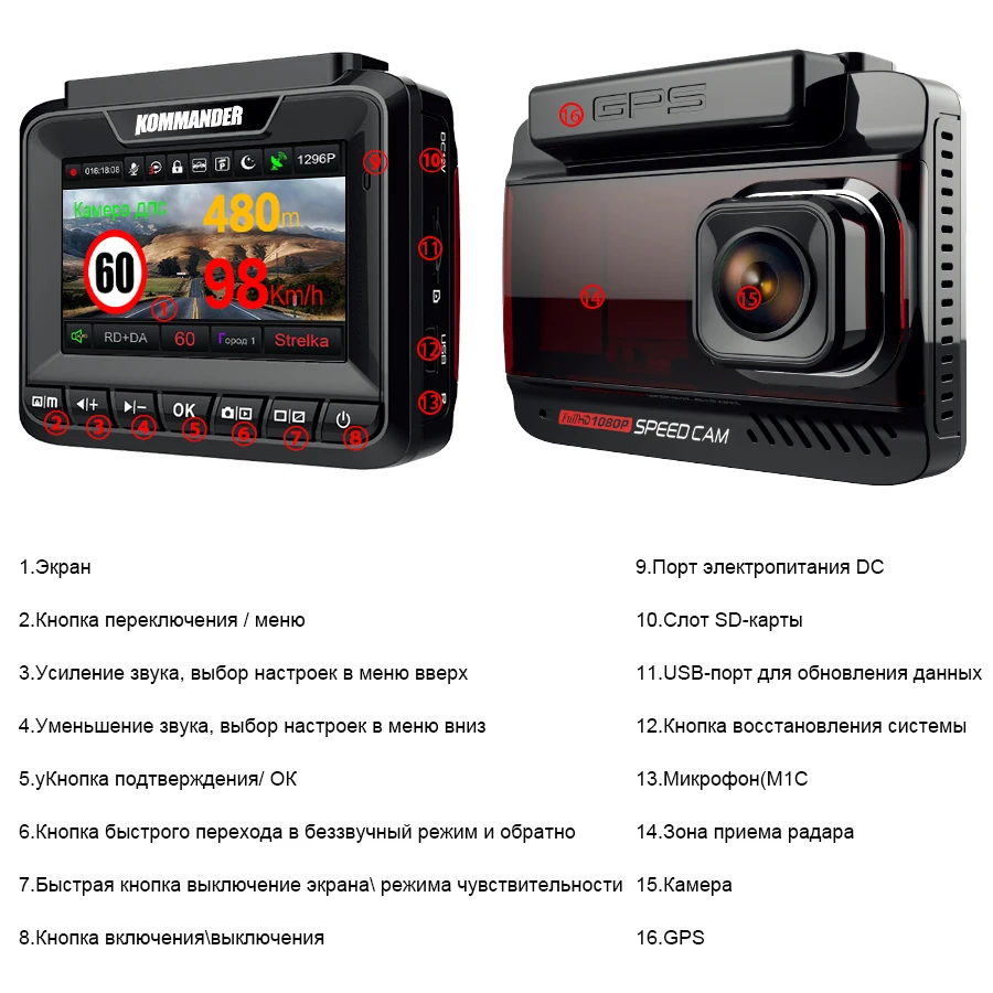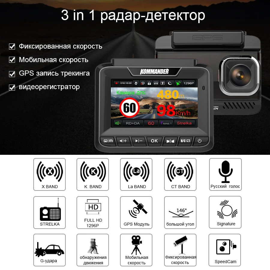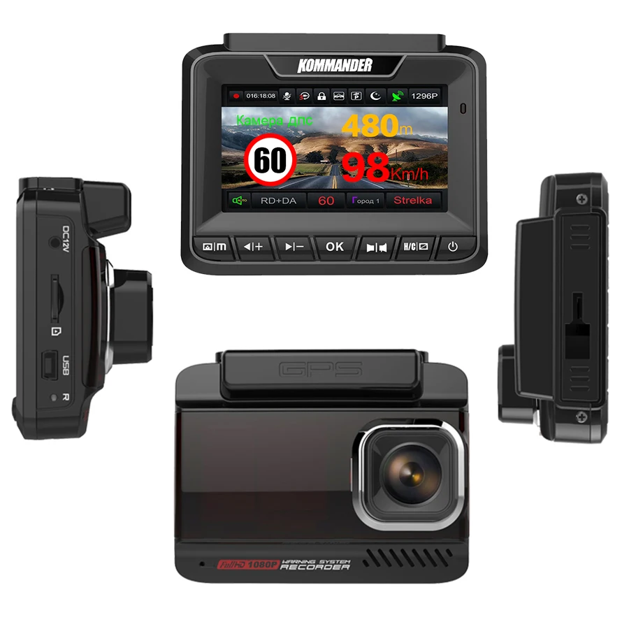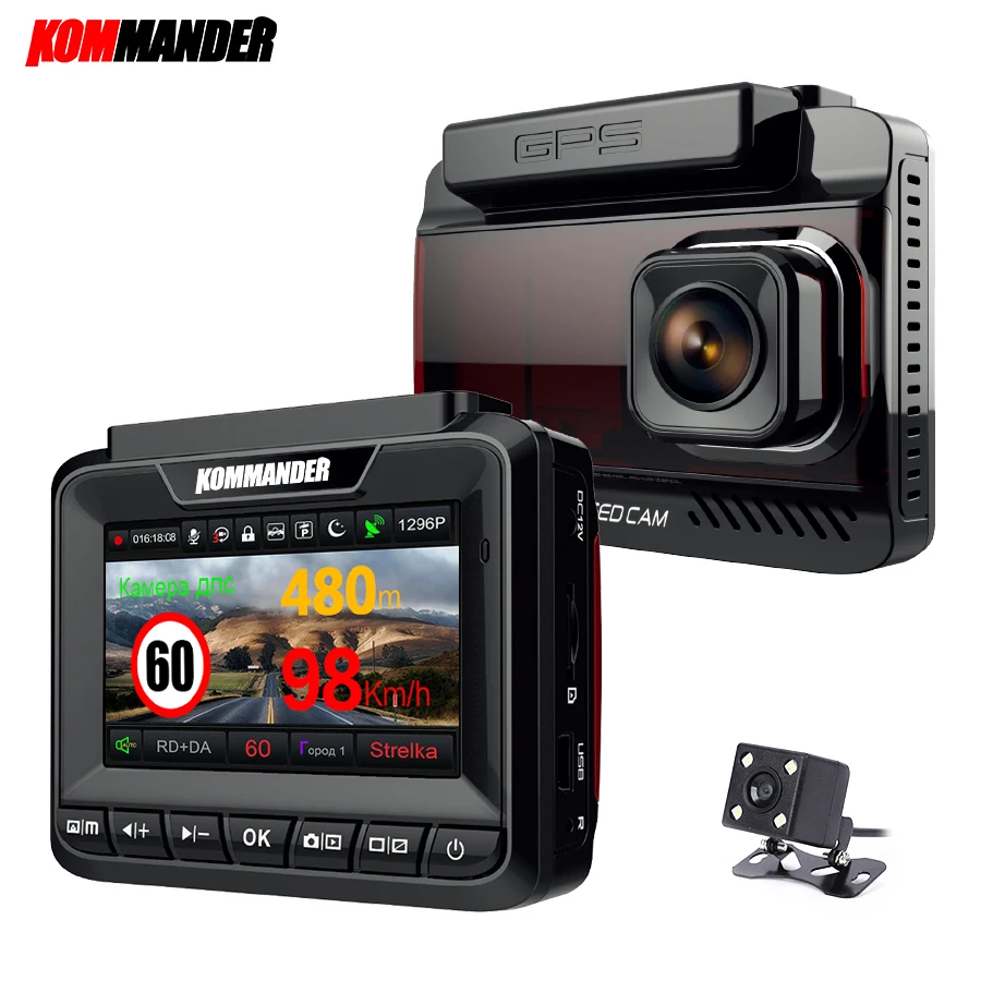 . [Скидка 60%] Купить Kommander автомобильный радар детектор встроенный font b GPS b font скорость Анти радар 3 в 1 Full HD 1080P 1296P 170 градусов видеорегистраторы с двумя объективами Цена Дешево.