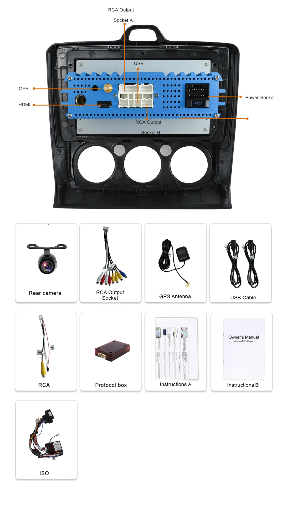 Product Name: 4G ram 2din автомобильное радио android 9,0 для ford focus с радио font b gps b font навигацией Зеркало Ссылка Bluetooth Wifi 3g 4G камера заднего вида карта