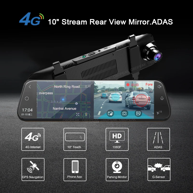 Product Name: 4G Автомобильный видеорегистратор 10 "Android 8,1 потоковое зеркало заднего вида FHD 1080P ADAS Dash Cam камера видео рекордер Авто регистратор Dashcam font b gps b font DVRS